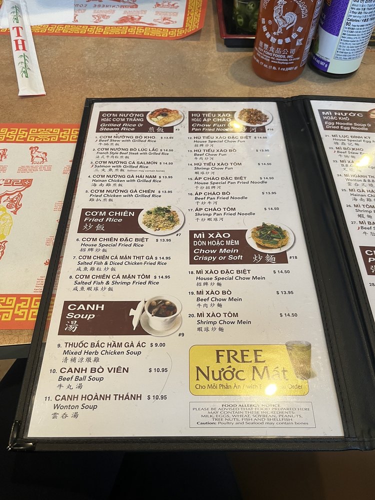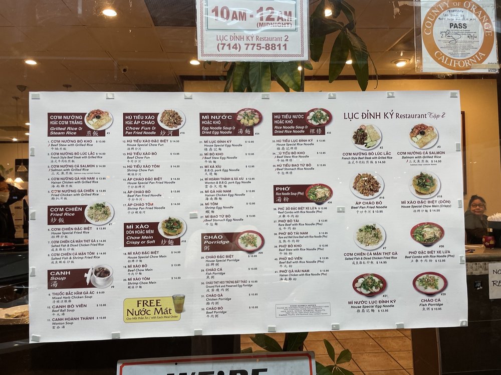 Luc Dinh Ky Restaurant is a popular eatery in Westminster, CA, known for its diverse menu offerings. From House Special Fried Rice and Salted Fish & Diced Chicken Fried Rice to Pan Fried Noodles and Egg Noodle Soup, the restaurant caters to a variety of tastes. Customers rave about the delicious dishes, with particular praise for the Wonton & B.B.Q. Pork Egg Noodle Soup. The restaurant also offers free herbal tea and chrysanthemum tea, adding a refreshing touch to the dining experience. While some reviews mention overcooked salmon and chewy beef, the majority of patrons appreciate the flavorful food and generous portions. With a casual ambiance and good service, Luc Dinh Ky is a go-to spot for those craving Vietnamese cuisine in Orange County.